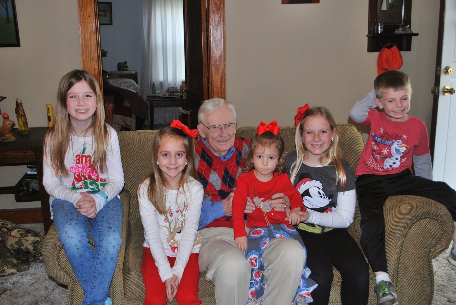 Paige got hot and took her shirt off (ha!). Picture with Papaw: